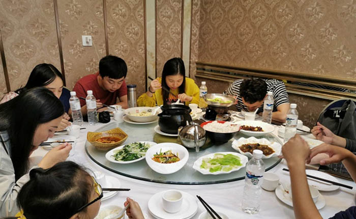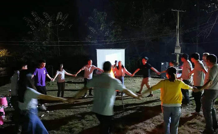 這邊吃飽了的美女帥哥們手牽手跳起了舞蹈,盡管不專業(yè),但團(tuán)隊(duì)手牽手心連心的氛圍確實(shí)感染了大家,為我們有這樣一支團(tuán)結(jié)和睦、積極向上的團(tuán)隊(duì)而自豪