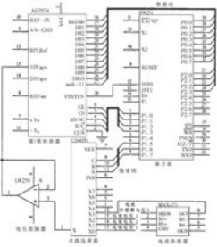充电电流通过电流传感器MAX471转换为电压值。电流采样的电压值和电池组的端电压值两者经过模拟开关CD4051,再经过电压跟随器输入到AD574,分别进行转换,其结果由单片机读取,并进行存储和处理。主要的电路连接如图2所示。